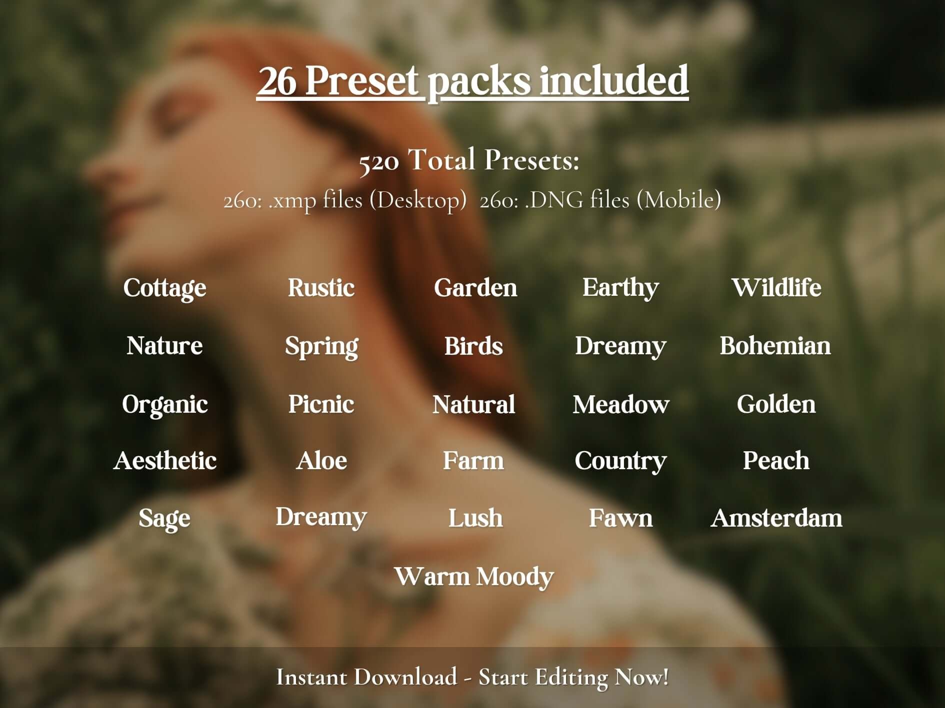 ✔️26Lightroom Presets PACKS! ✔️260 Lightroom MOBILE Presets ✔️260 Lightroom Presets for DESKTOP ✔️PDF Step-by-Step Instructions! ✔️Free Support! Let me know any Inquires or Questions you may have!